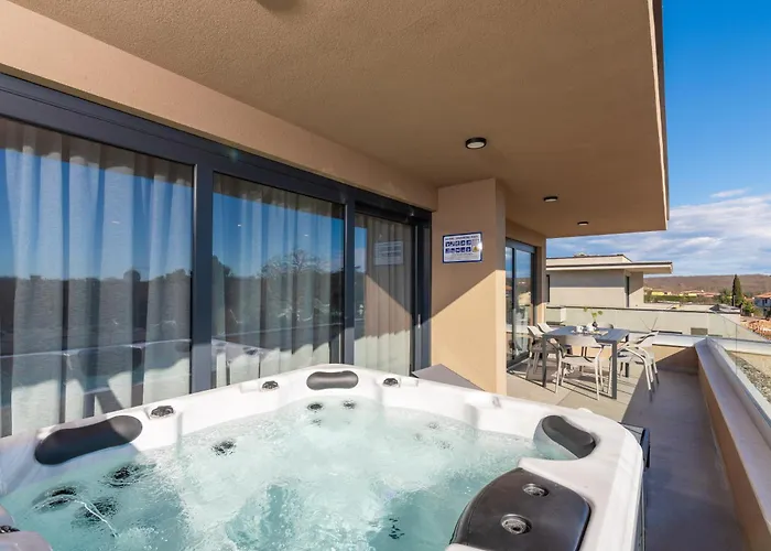 Situé à environ 4 km du Parc aquatique Istralandia, l'appartement Quercus Village Penthouse With Jacuzzi Novigrad Istria surplombe la rue. Un Wi-Fi et un parking privé gratuit sont également disponibles dans la résidence.